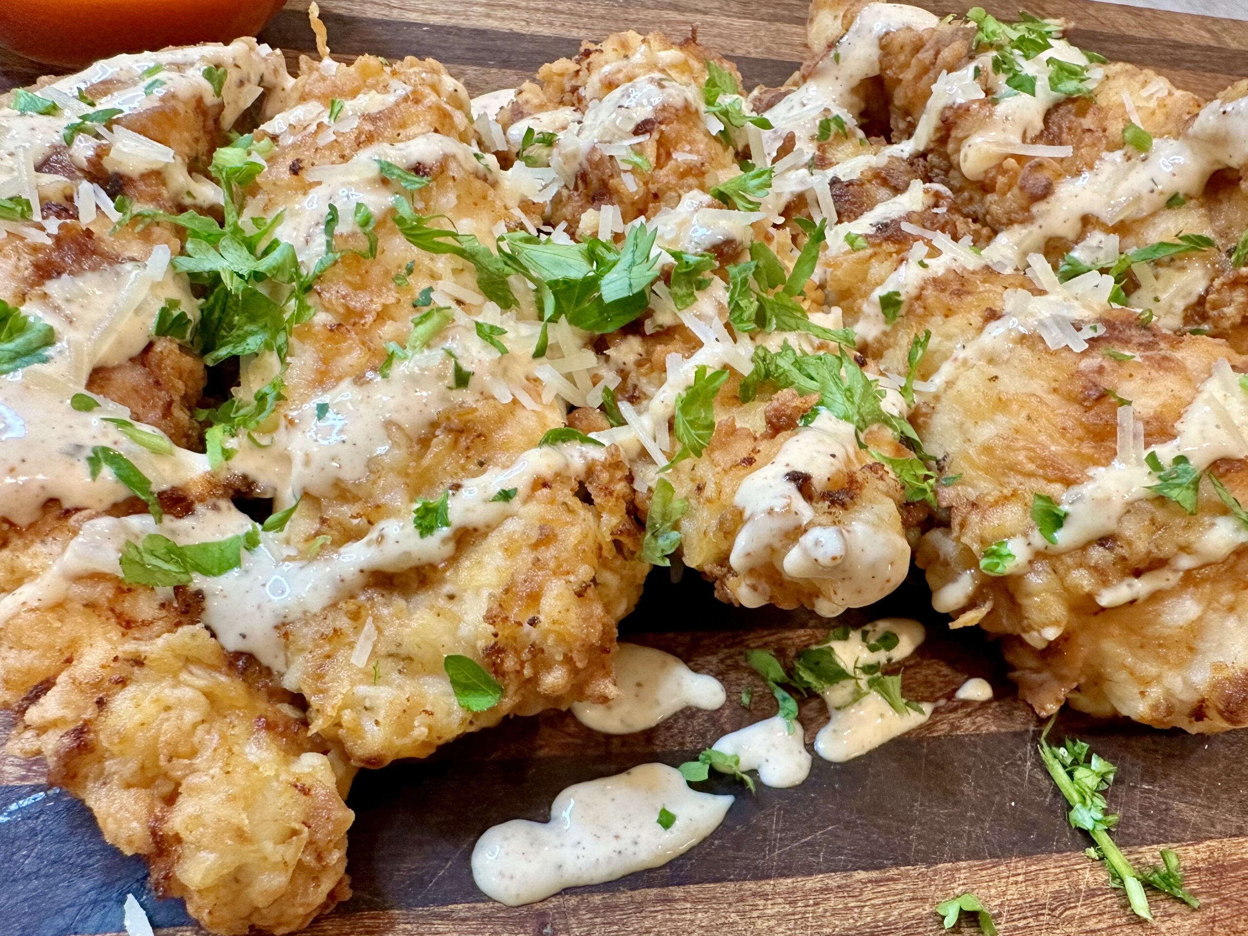 These delicious parmesan garlic chicken tenders are easy, flavorful & cluckin’ good! This is a meal the entire family will love. They are soaked overnight in buttermilk & garlic, then fried to a golden perfection with a satisfying crunch.
